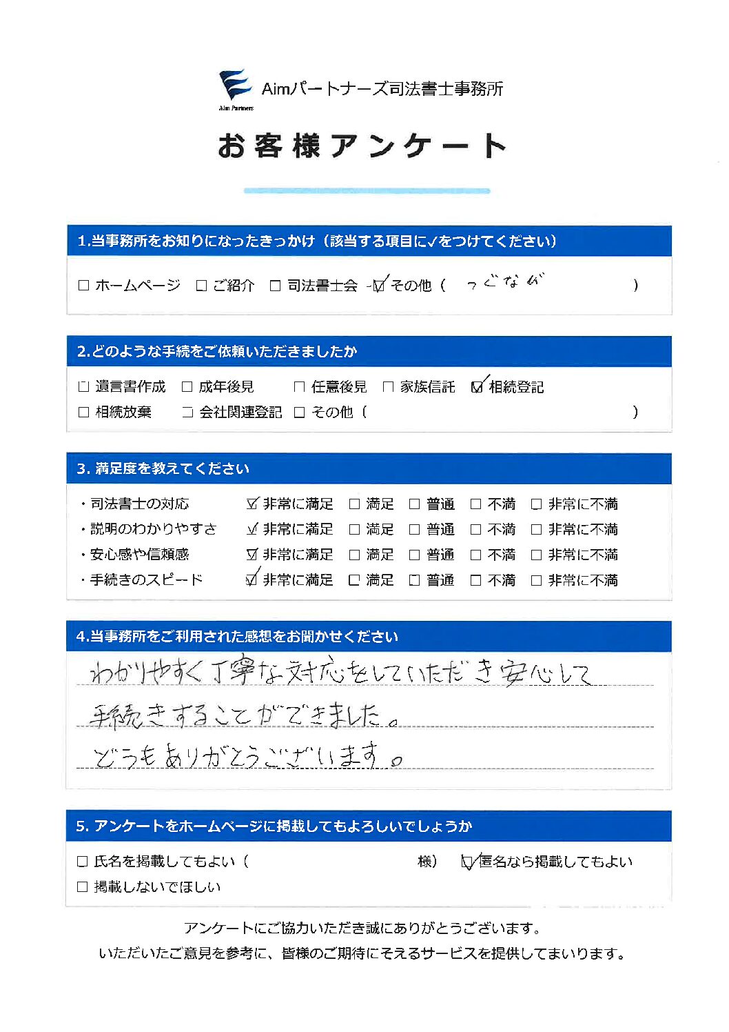 お客様の声(相続登記_江里様)
